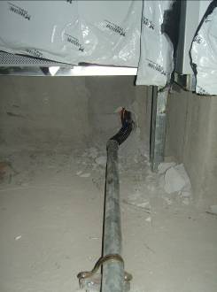雖然不是每間演播室都會有排水管,但是當(dāng)我們在現(xiàn)場勘查的過程中,發(fā)現(xiàn)了這種情況,一定要及早的向設(shè)計(jì)方提出質(zhì)疑,并協(xié)調(diào)更改管線的走向。如圖4,為演播室房內(nèi)部穿過的排水管,它不但給演播室?guī)砹瞬槐匾脑肼?,同時(shí)也有漏水損害設(shè)備及人員的安全隱患,對于此類的問題需要有較強(qiáng)的協(xié)調(diào)能力及原則性。