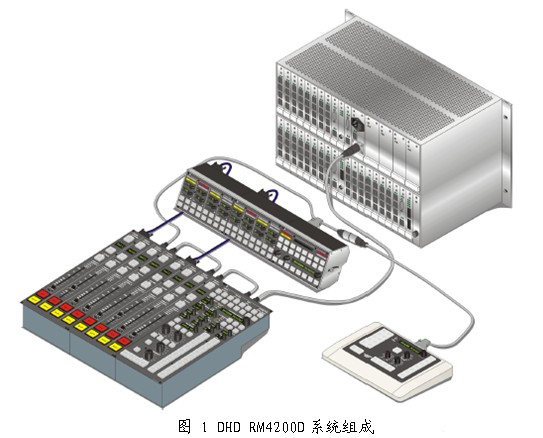 DHD RM4200D調音臺系統(tǒng)主要由2部分硬件組成:主機機柜,輸入、輸出、控制系統(tǒng)和DSP(Digital Signal Proceessing數字信號處理);控制臺面(調音臺),推子、按鍵和顯示系統(tǒng)。兩部分由一個工業(yè)標準的CAN BUS總線連接。因此,所有的單元可以相互單獨存在,其間沒任何復雜的配線連接。主機機柜在沒有控制臺面的情況下,也可以作為一個單獨的裝置獨立工作。整個系統(tǒng)采用了高度模塊化技術,可以利用系統(tǒng)提供的PC軟件設置,并保存在自己的系統(tǒng)里,PC機不參與日常的操作,需要改動設置時,利用RS232、RS422或RJ45接口連接上PC機即可設置。