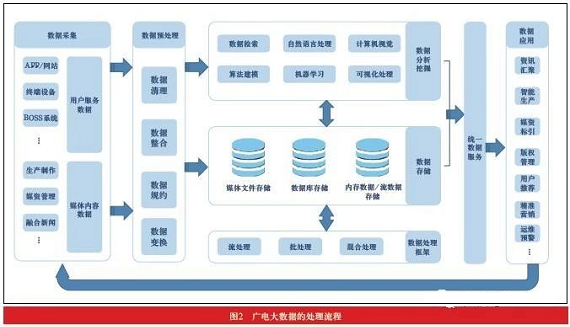在媒體融合和大數(shù)據(jù)發(fā)展的背景下,廣播電視行業(yè)要逐步轉(zhuǎn)變傳統(tǒng)理念和運營模式,借助大數(shù)據(jù)平臺采集、存儲、挖掘數(shù)據(jù)資產(chǎn),通過大數(shù)據(jù)平臺對媒體內(nèi)容數(shù)據(jù)、用戶服務數(shù)據(jù)進行全方位分析挖掘,從而提升媒體內(nèi)容生產(chǎn)的能力,創(chuàng)新網(wǎng)絡視聽業(yè)務產(chǎn)品,升級媒體運營服務、加強媒體傳播的監(jiān)測監(jiān)管。