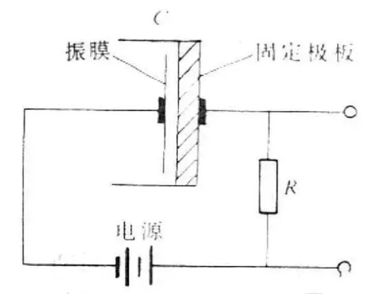 極頭有振膜和底極極 , 振膜 和底極板構(gòu)成電容器的兩個(gè)極 , 當(dāng)把話筒放在聲場(chǎng)中時(shí) , 聲波使振膜振動(dòng) , 于是兩極的距離隨聲波而變 化 , 從而改變電容量