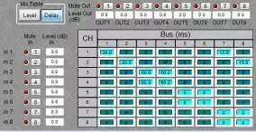 ▲8進(jìn)8出帶延時(shí)參量型矩陣在節(jié)點(diǎn)音量調(diào)整同時(shí)還具有延時(shí)參數(shù)調(diào)整