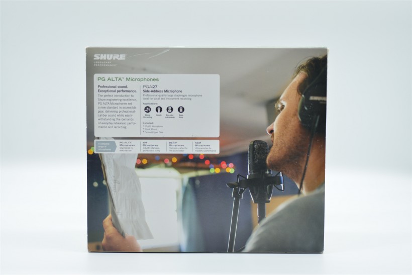 PGA27擁有一個(gè)挺大的箱體,正面為產(chǎn)品場景圖,背面為場景應(yīng)用圖。背面還有話筒的描述,應(yīng)用,箱內(nèi)清單列表,可惜都是英文,不過并不影響使用。