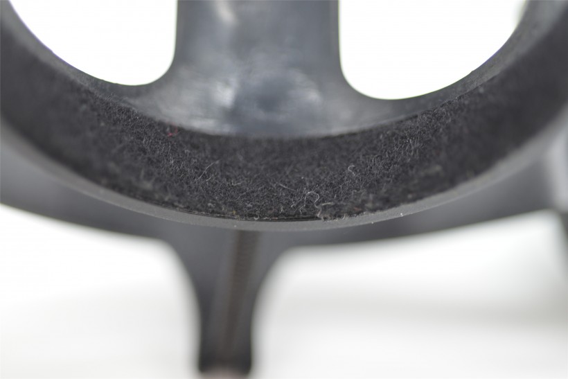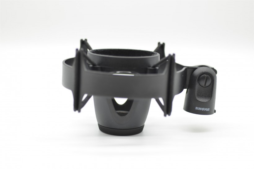 減震架的做工還是不錯(cuò)的。在與話筒架的接口處還印著Shure logo。話筒與減震架是通過底部旋轉(zhuǎn)口來進(jìn)行固定,這也為話筒倒置提供了可能。有一個(gè)小小細(xì)節(jié)是,話筒與減震架的接觸位置內(nèi)部還安裝了一圈的墊片,為了防止減震架與話筒摩擦而傷害到話筒,可謂非常有心。