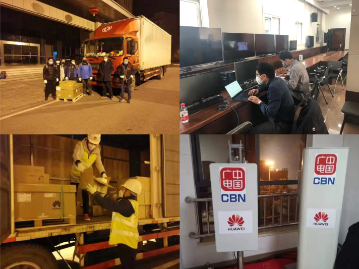 一是“急速72小時(shí)”推進(jìn),在湖北武漢新聞發(fā)布會(huì)現(xiàn)場(chǎng)實(shí)戰(zhàn)應(yīng)用700MHz+4.9GHz中國(guó)廣電5G,在武漢雷神山醫(yī)院完成中國(guó)廣電5G基站安裝調(diào)試,免費(fèi)為醫(yī)院工作人員及隔離區(qū)病人提供公共Wi-Fi服務(wù)。按照國(guó)家廣電總局的工作要求,中國(guó)廣電迅速行動(dòng)、連夜作戰(zhàn),在湖北省委宣傳部、湖北省通信管理局的協(xié)助下,聯(lián)合湖北廣播電視臺(tái)、湖北廣電網(wǎng)絡(luò)公司、華為公司等,圍繞服務(wù)抗疫的共同目標(biāo),迅速行動(dòng),協(xié)同作戰(zhàn),在全民防疫、交通管制的特殊時(shí)期,緊急協(xié)調(diào)設(shè)備連夜從北京專(zhuān)車(chē)發(fā)往武漢,迅速開(kāi)始安裝和核心網(wǎng)聯(lián)調(diào)優(yōu)化。自1月29日晚項(xiàng)目建設(shè)啟動(dòng),快速完成施工審批、1200公里長(zhǎng)途運(yùn)輸、網(wǎng)絡(luò)規(guī)劃、站點(diǎn)勘測(cè)、站點(diǎn)環(huán)境準(zhǔn)備、中國(guó)有線和湖北廣電傳輸鏈路打通、基站安裝、核心網(wǎng)聯(lián)調(diào)、網(wǎng)絡(luò)優(yōu)化和業(yè)務(wù)調(diào)測(cè)等眾多環(huán)節(jié),創(chuàng)造了從北京5G核心網(wǎng)聯(lián)調(diào)到武漢基站開(kāi)通僅用72小時(shí)的神奇速度。中國(guó)廣電5G基站在新聞發(fā)布會(huì)現(xiàn)場(chǎng)投入實(shí)戰(zhàn)應(yīng)用,完成雷神山醫(yī)院中國(guó)廣電5G基站安裝調(diào)試,免費(fèi)為醫(yī)院建設(shè)者、醫(yī)護(hù)人員及隔離區(qū)病人提供公共Wi-Fi服務(wù)。廣電5G在武漢疫區(qū)的開(kāi)通發(fā)揮積極作用,得到湖北省委的高度肯定。