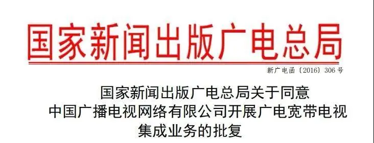 最早是2016年8月份的時(shí)候,廣電總局就批復(fù)同意中國(guó)廣播電視網(wǎng)絡(luò)有限公司開展廣電寬帶電視集成業(yè)務(wù)。