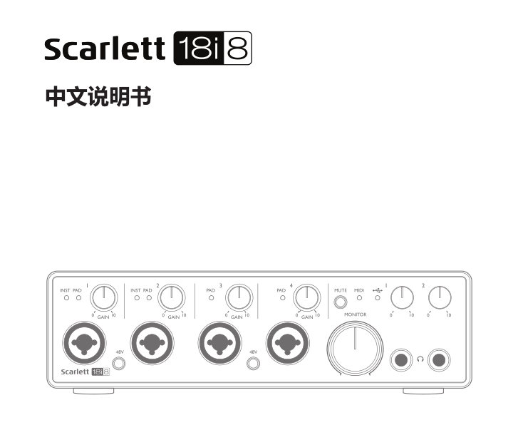 感謝閣下購買第二代Scarlett 18i8。作為Focusrite專業(yè)音頻接口產品的一員,Scarlett 18i8集成了Focusrite高品質模擬前置放大器,與配套的Focusrite Control應用軟件搭配使用,讓你擁有一套緊湊而且功能強大的高品質電腦音頻傳輸方案。你也可以通過Focusrite Control軟件把Scarlett 18i8設置為獨立音頻接口和其他類型錄音設備連接使用。