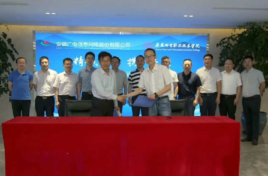 7月23日,安徽廣電網(wǎng)絡(luò)公司與安徽郵電職業(yè)技術(shù)學(xué)院戰(zhàn)略合作協(xié)議簽訂儀式在安徽通服大樓舉行。公司黨委書(shū)記、董事長(zhǎng)、總經(jīng)理陳強(qiáng),副總經(jīng)理李荊生,總經(jīng)理助理杜廣武一行與安徽通服集客部總監(jiān)雷雨、學(xué)院院長(zhǎng)陳良等參加了簽約儀式。