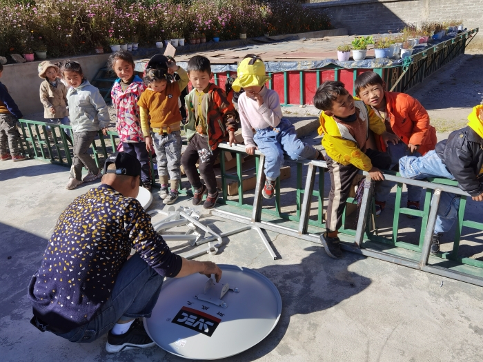 柯洛洞鄉(xiāng)是德格縣下屬鄉(xiāng)鎮(zhèn),距離縣城1小時車程,該鄉(xiāng)行政區(qū)域內(nèi)的色巴村小是此次“空中課堂”教育扶貧項目的援助教學(xué)點之一。色巴村小距離鄉(xiāng)鎮(zhèn)政府所在地還有1小時山路,村小只有小學(xué)一二年級教學(xué)班,共有學(xué)生50名,教師5位,整個村小只有3個教室,軟硬件教學(xué)資源相對匱乏。受制于地理環(huán)境、交通等因素,色巴村發(fā)展較為緩慢,村小的教育發(fā)展也受到一定影響,高質(zhì)量、豐富的教育教學(xué)資源無法及時觸達(dá),阻礙了學(xué)生和老師接收外界的教育資訊與新知識、新課程。“空中課堂”項目實施以來,安裝隊及時克服困難,將直播課程接收相關(guān)設(shè)備運抵色巴村小,快速進(jìn)行安裝調(diào)試,幫助該校師生解決了長期以來的教育教學(xué)難題,清華大學(xué)附屬小學(xué)等多所名校的教育資源通過“空中課堂”流向了色巴村小。