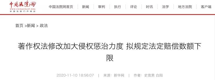 11月10日下午,著作權(quán)法修正案草案三審稿提請十三屆全國人大常委會第二十三次會議審議。