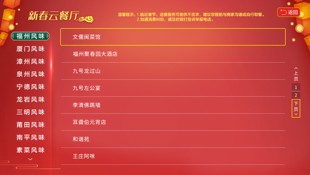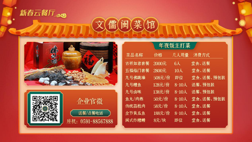閩菜專區(qū)首次推出“新春云餐廳”專欄,涵蓋十多個地方風(fēng)味,集結(jié)百余家企業(yè)提供“線上訂餐,無接觸配送”服務(wù)。佛跳墻、白斬河田雞、八寶鱘飯、閩南炒面線……打開所選擇的餐飲企業(yè)頁面,可以看到各色美食,只要手機(jī)掃碼下單或撥打訂餐電話,送餐企業(yè)就能按照無接觸配送要求,規(guī)范全過程防疫管理,將心動菜品直送到家!