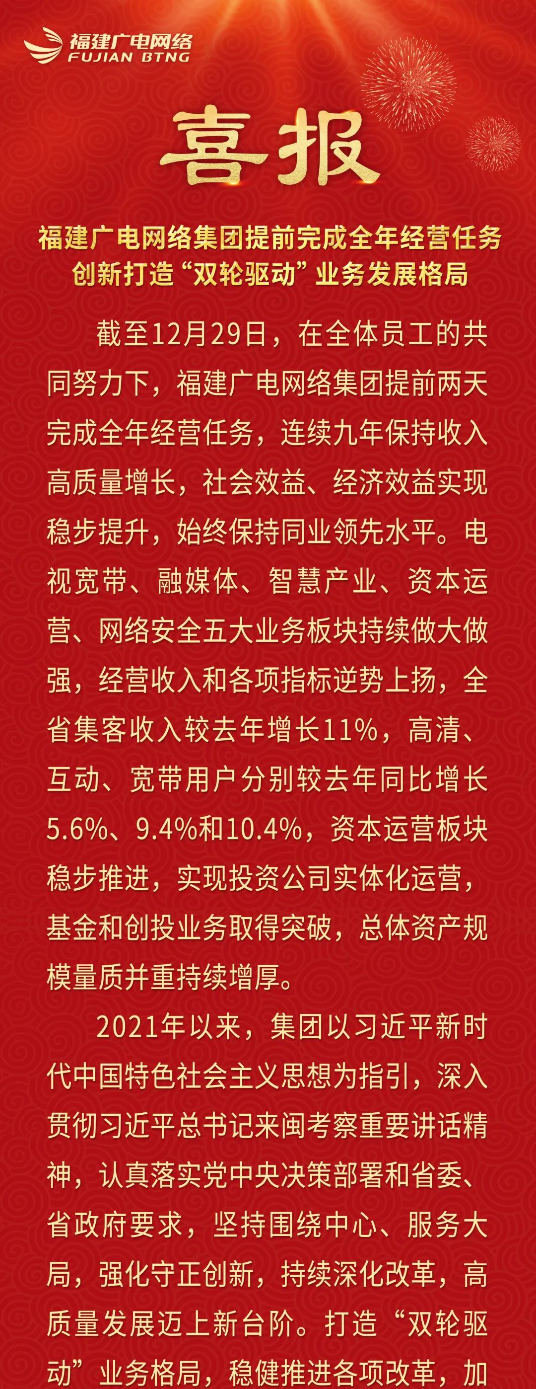 福建廣電網(wǎng)絡(luò)提前完成2021全年經(jīng)營任務(wù) 創(chuàng)新打造“雙輪驅(qū)動”業(yè)務(wù)發(fā)展格局