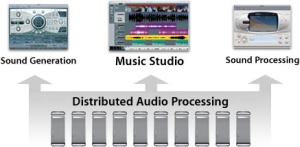 --分布式音頻處理,可以使用多臺通過以太網(wǎng)連接的蘋果電腦同時(shí)處理音頻數(shù)據(jù),這使利用起Logic全部的128個(gè)音頻通道成為可能。分布式音頻處理就是允許使用多臺電腦的共同運(yùn)算完成一個(gè)復(fù)雜的音頻處理工作,這確實(shí)是Logic高人一等的亮點(diǎn)。