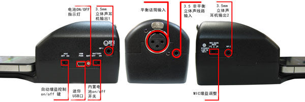 3)插入話(huà)筒,戴上耳機(jī), 就可以在線(xiàn)傳輸15K 音頻信號(hào); 或者通過(guò)iphone觸摸屏操作按鍵錄音;用FTP傳輸錄音信號(hào)。