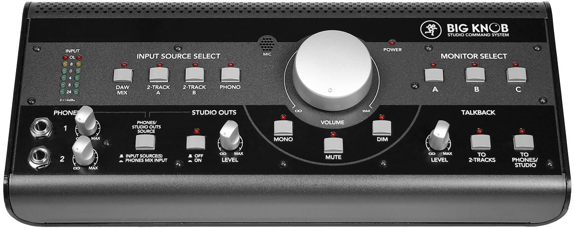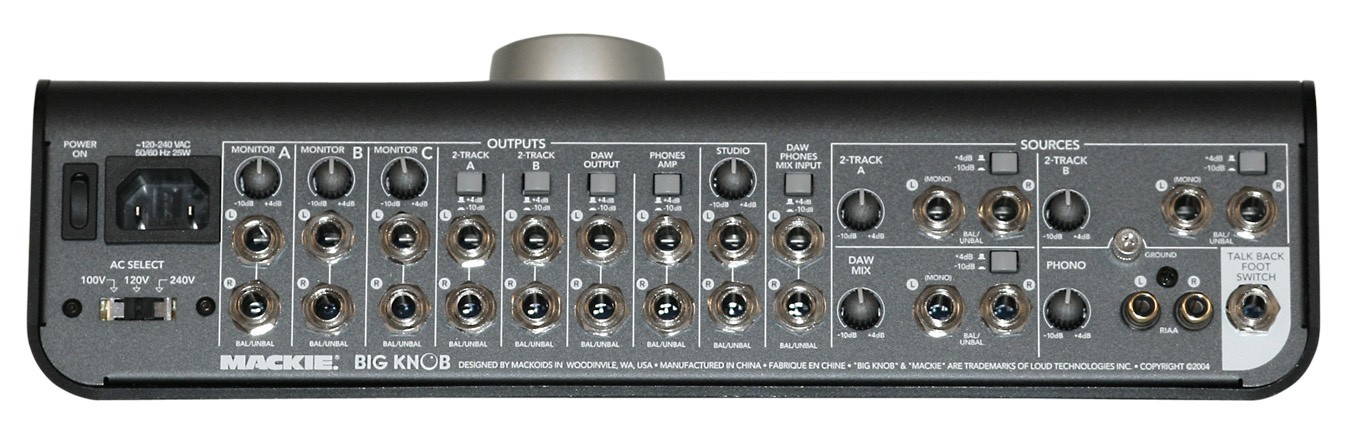 Mackie公司的錄音室指令控制器Big Knob,是一款及監(jiān)聽(tīng)電平、控制監(jiān)聽(tīng)、切換監(jiān)聽(tīng)、聽(tīng)源選擇、錄音室對(duì)講雙監(jiān)聽(tīng)、耳機(jī)輸出唱機(jī)于一體的前置放大器。
