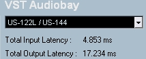US系列把ASIO緩沖分為5個(gè)級別:最低、比較低、一般、比較高和最高(如圖11),在最低緩沖時(shí)輸入/輸出延遲如圖12。換為一般緩沖后延遲如圖13。