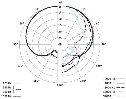 心形話筒 MKH 8040 適合幾乎任何應(yīng)用。它能明顯的削減對(duì)房間回聲的拾取。這對(duì)于在一個(gè)建聲條件很差的房間內(nèi)錄音很有幫助,因?yàn)楦蓴_聲音主要從后面過(guò)來(lái)。