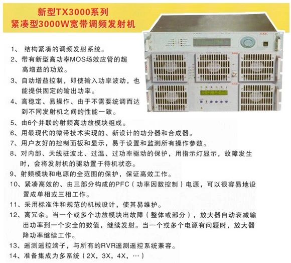 產(chǎn)品簡介:TX3000 3KW緊湊型調(diào)頻發(fā)射機(jī)