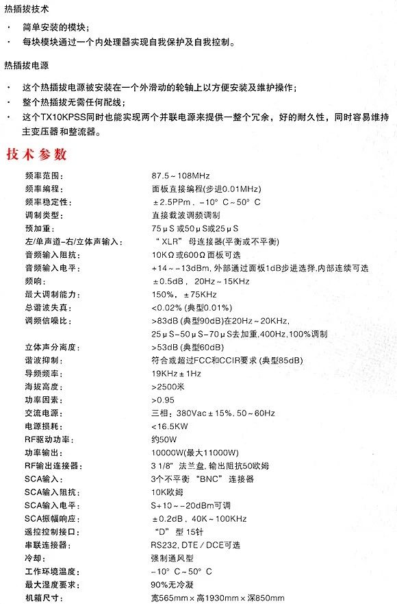 產(chǎn)品簡介:TX10KPSS 10KW 熱插拔調(diào)頻發(fā)射機(jī)