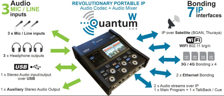 Quantum W繼承了Prodys Ikusnet視頻編解碼器系列的世界一流IP技術(shù):自動抖動緩沖區(qū),自適應比特率,最多7個IP鏈接(以太網(wǎng),3G / 4G,Wifi)的綁定,可確保以最佳的音頻質(zhì)量實現(xiàn)安全的音頻流 。