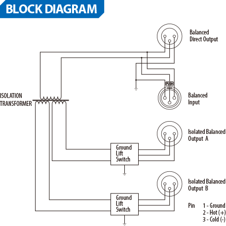 線路分配器的每一通道均分別設有三組輸出:1 組直接輸出、2 組變壓器隔離輸出、而該 2 組變壓器隔離輸出 (A及B) 亦同樣設有地線分離選擇開關,可幫助解決因地線回路產生的噪音。將開關推向左時,地線會設定分離;而將開關向右時,地線將會設定為連接。