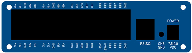 ? 可拆卸的歐式塊螺釘終端連接器用于音頻/信號I/O和遠(yuǎn)程控制連接。提供必要的配合插頭。